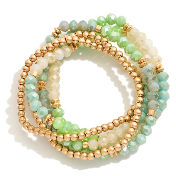 Set of Five Beaded Stretch Bracelets Featuring Gold Tone and Faceted Beads