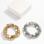 Set Of Four Beaded Stretch Bracelet Featuring Glass Beads and Pearl Bead Details