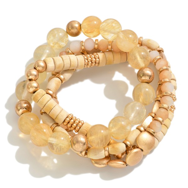 Set of Four Beaded Stretch Bracelet Featuring Stone, Wood and Cluster Beads