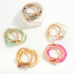 Set of Four Beaded Stretch Bracelets Featuring Heishi Details