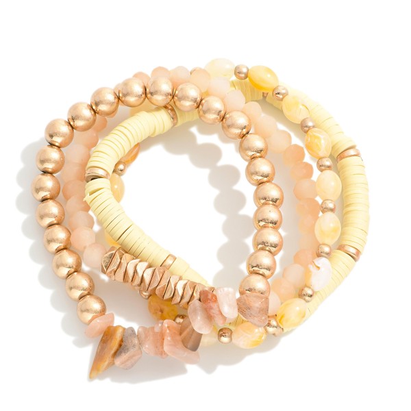 Set of Four Beaded Stretch Bracelets Featuring Heishi Details