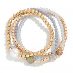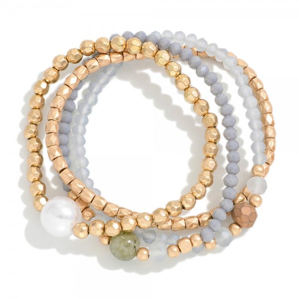 Set of Four Dainty Beaded Stretch Bracelets Featuring Pearl Station