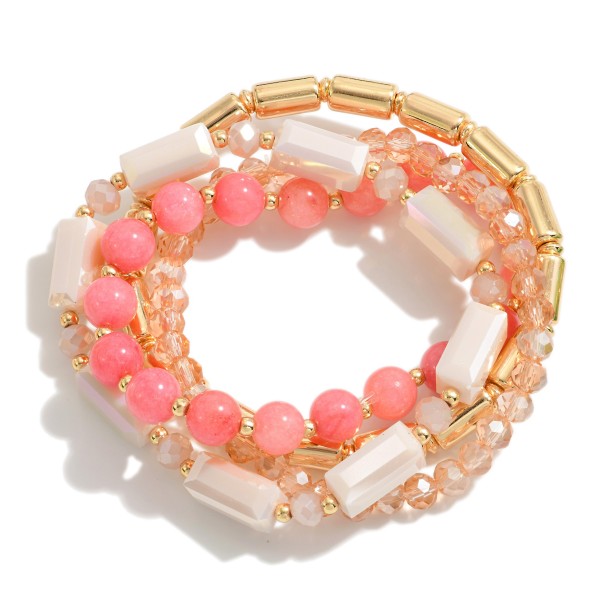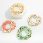 Set of Four Glass Beaded Stretch Bracelets With Gold Tone Accents
