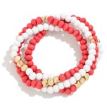 Set of Four Wood Beaded Stretch Bracelets