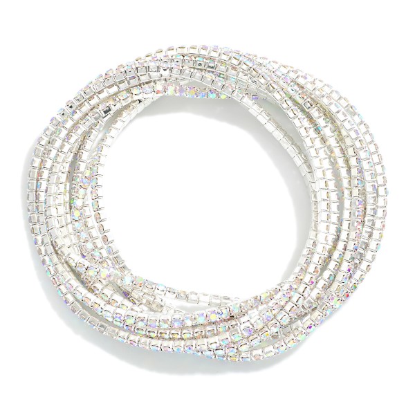 Set of Ten Linked Rhinestone Stretch Bracelets