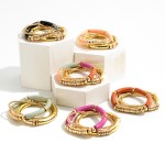 Set of Three Beaded Stretch Bracelets Featuring Acrylic and Gold Tone Beads.