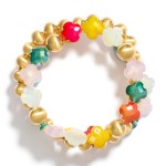 Set Of Three Beaded Stretch Bracelets Featuring Faceted Clover Beads & Metal Tones