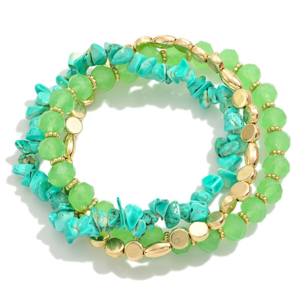 Set of Three Beaded Stretch Bracelets Featuring Faceted and Stone Beads