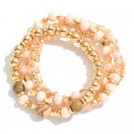Set Of Three Beaded Stretch Bracelets Featuring Gold Tones, Semi-Precious Stones, & Faceted Beads