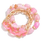 Set of Three Beaded Stretch Bracelets Featuring Resin/Gold Chain Link and Stone Accents