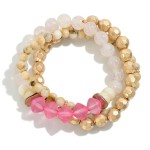 Set of Three Beaded Stretch Bracelets Featuring Semi-Precious Natural Stone Beads and Frosted Bead Accents