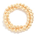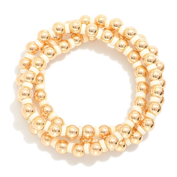 Set Of Three Metal Tone Beaded Bracelets Featuring Heishi Bead Accents