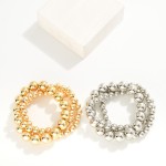 Set of Three Metal Tone Beaded Stretch Bracelets