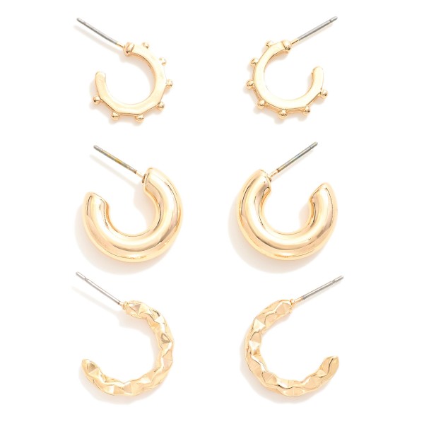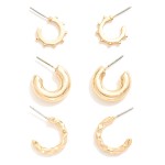 Set Of Three Metal Tone Hoop Earrings