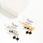 Set Of Three Metal Tone Stud & Huggie Hoop Earrings Featuring Clover Accents