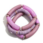 Set of Three Stretch Bracelets Featuring Acrylic Tube Beads and Heishi Beads