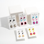 Set of Three Stud Earrings Featuring Rhinestone and Animal Print Accents