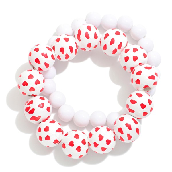Set Of Two Beaded Bracelets featuring Wood Beads & Hearts