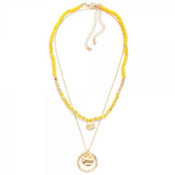 Set of Two Beaded And Chain Link Necklaces Featuring Circular Pendant