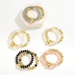 Set Of Two Beaded Stretch Bracelets Featuring Gold Tones & Faceted Beads