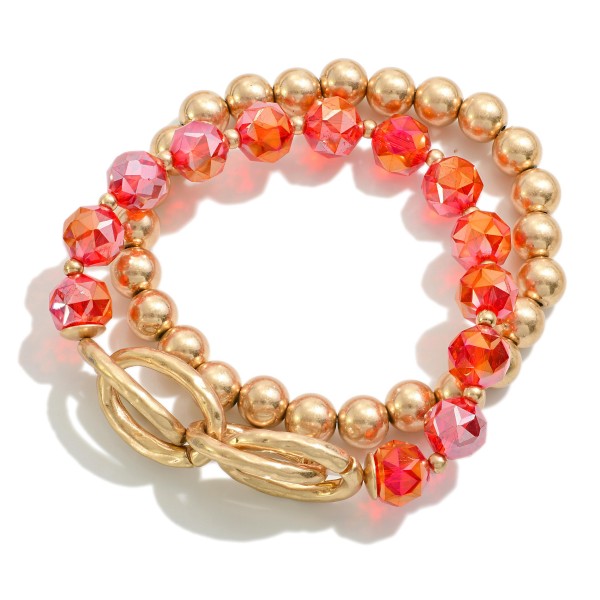 Set of Two Beaded Stretch Bracelets Featuring Metal Chain Links