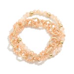 Set of Two Beaded Stretch Bracelets Featuring Twisted Metal Detail