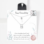 Set Of Two Dainty Chain Link Friendship Necklaces Featuring Key & Lock Pendants With Cubic Zirconia Details