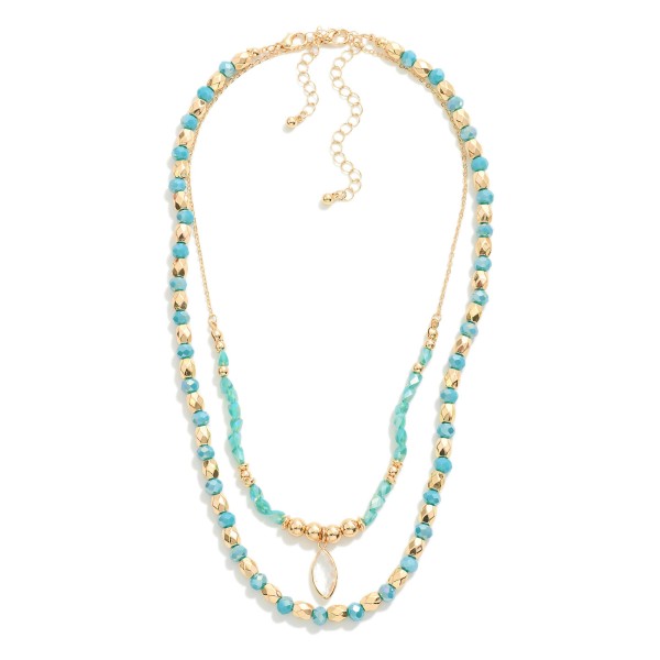 Set of Two Faceted Beaded Necklace Set With Crystal Pendant