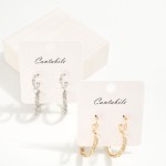 Set Of Two Metal Tone Hoops Earrings Featuring Chain Link & Rhinestone Accents