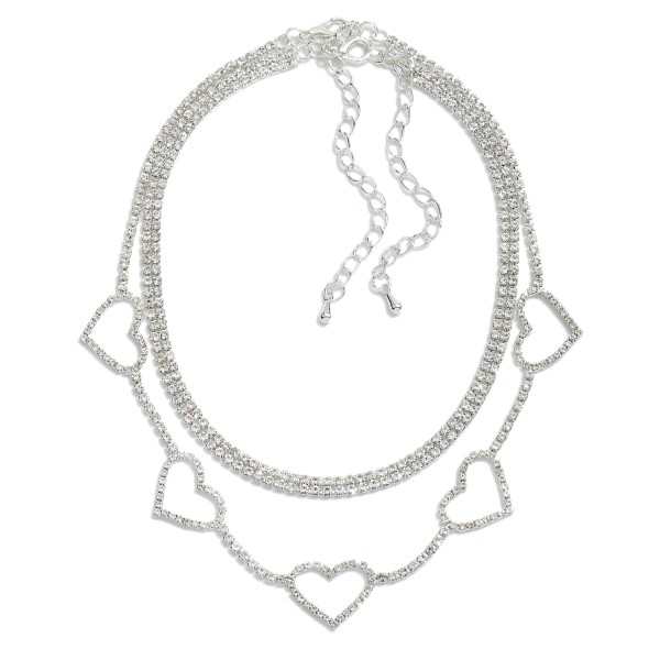 Set of Two Rhinestone Choker / Collar Necklaces Featuring Heart Details