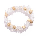 Set Of Two Stone Beaded Stretch Bracelets Featuring Metal Tones & Glitter Beads