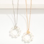 Simple Chain Link Necklace Featuring Pearl Beaded Circle Pendant