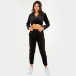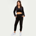Soft Faux Fur Fleece Half Zip Cropped Hoodie Jogger Set.