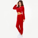 Soft Faux Fur Fleece Half Zip Cropped Hoodie Jogger Set.