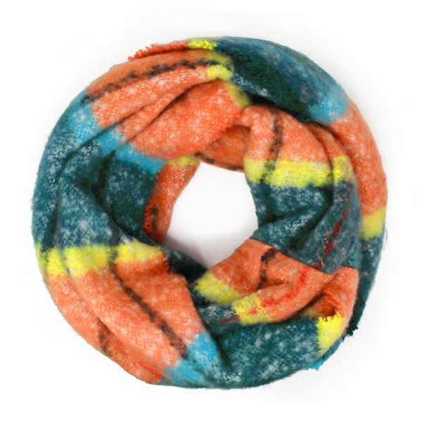 Soft Knit Plaid Infinity Scarf with Fringe Detail