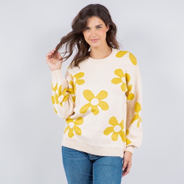 Soft Knit Retro Flower Print Sweater (6 Pack)