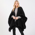 Soft Knit Ruana Wrap With Faux Fur Edges