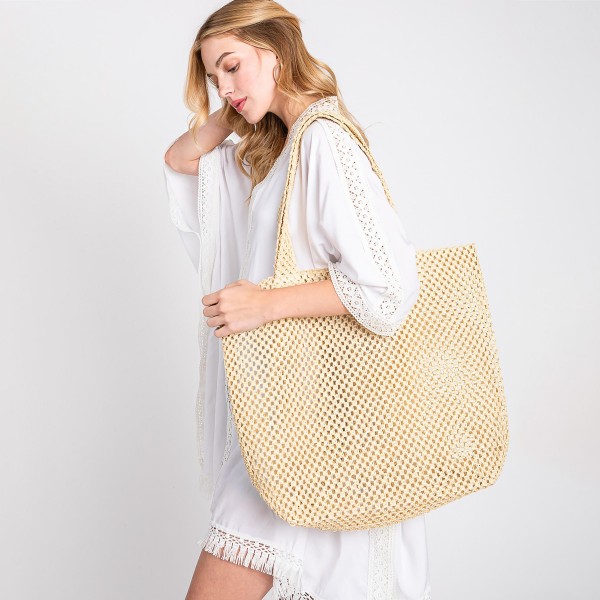 Solid Color Crochet Straw Bag