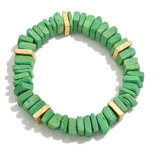 Square Cut Stone Beaded Stretch Bracelet With Gold Tone Accents