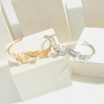 Squeeze Bangle Bracelet With Pearl and Leaf Details