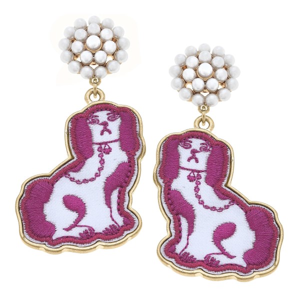 Staffordshire Dog Patch And Cluster Pearl Drop Earrings