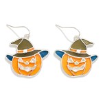 Stained Glass Jack-O'-Lantern Drop Earrings
