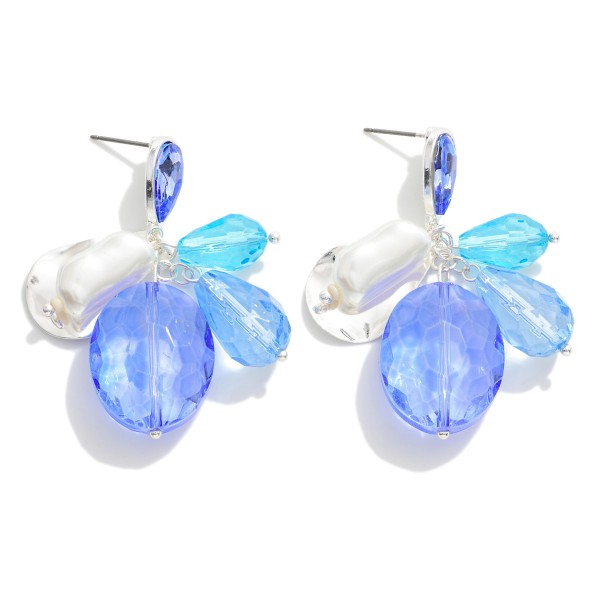 Statement Faceted Glass Crystal Tassels Drop Earrings With Pearl Bead Detail