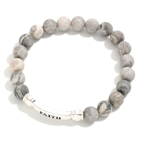 Stone Beaded Stretch Bracelet Featuring Metal Tone 'FAITH' Message Bar