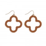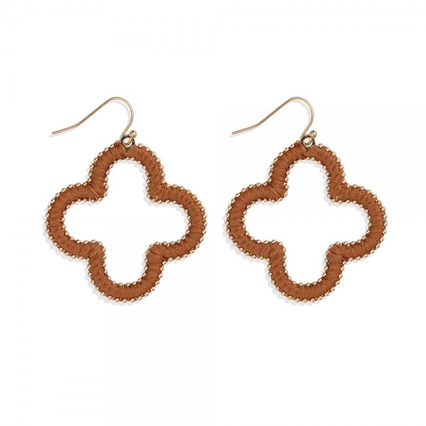 String Wrapped Vegan Leather Hollow Clover Drop Earrings
