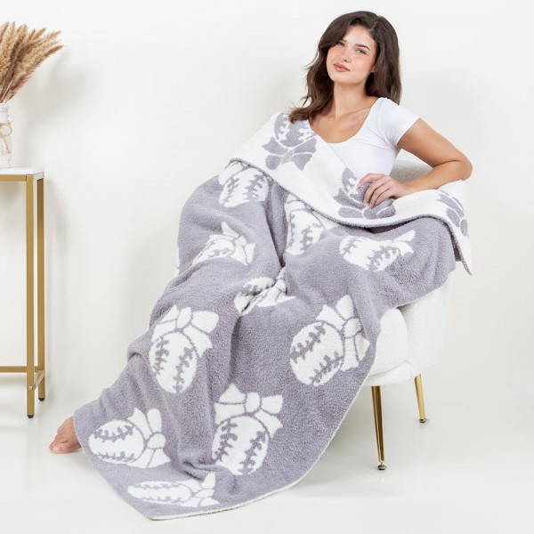 Super Soft Baseball Bow Print Brushed Poly Microfiber Throw Blanket