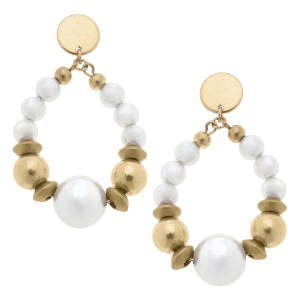 Teardrop Accent Earrings With Pearl And Gold Beading