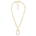 Textured Metal Paperclip Chain Link Necklace Featuring Rhinestone Studded Hollow Geometric Shape Pendant