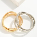 Two Intertwined Metal Tone Cobra Stretch Bracelets