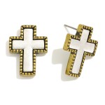 View more Cross Jewelry, Metal Tone Earrings, Two Tone, Stud Earrings